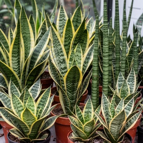 Explore the different varieties of snake plants, from Laurentii to Moonshine and Cylindrical types.